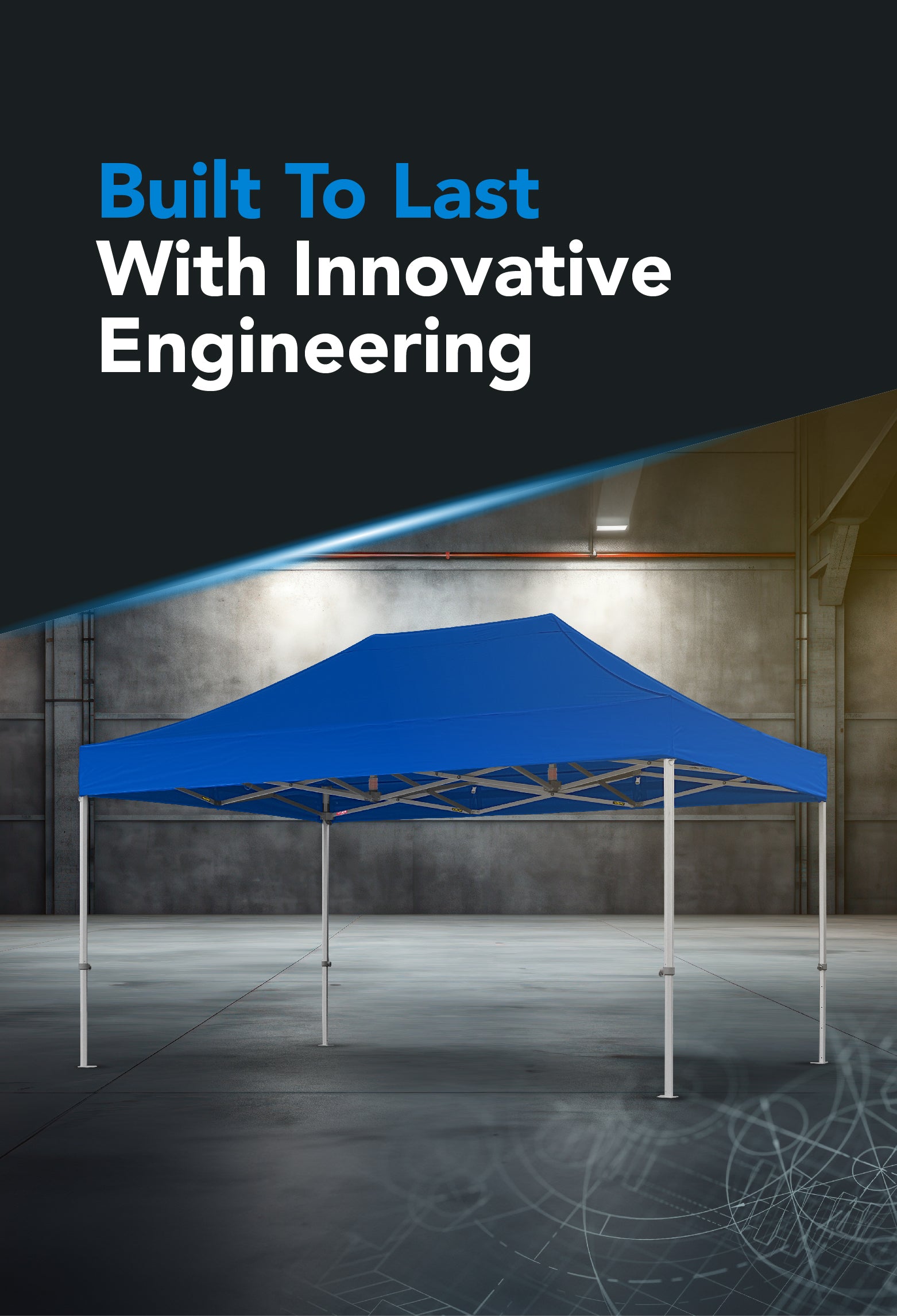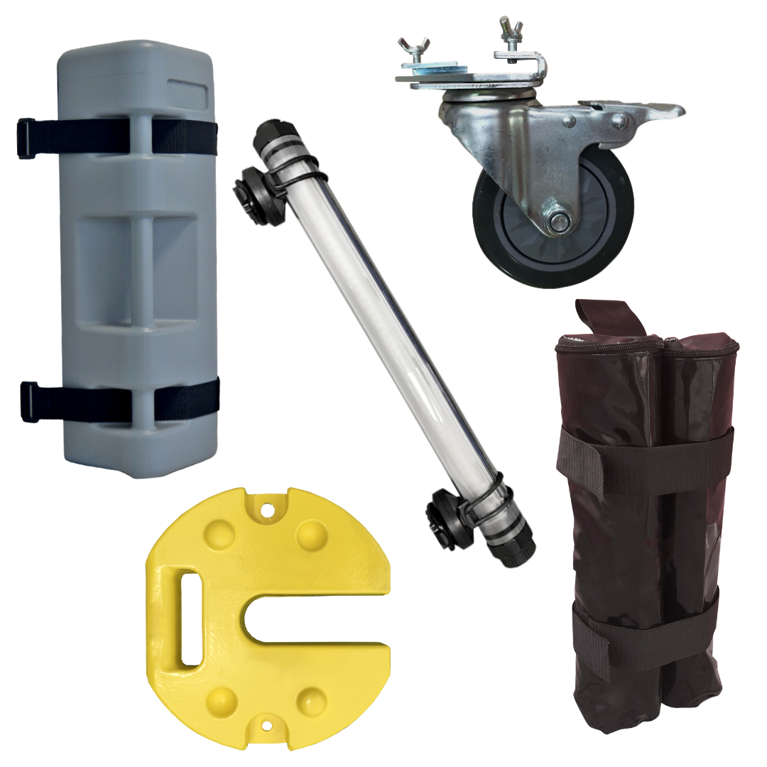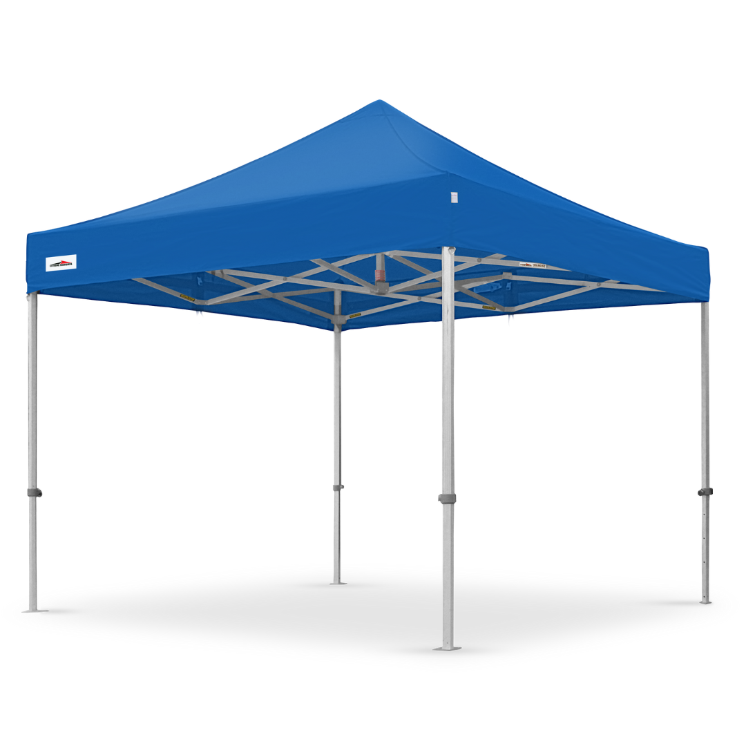 Each canopy package includes the frame, roof fabric, a wheeled carry bag for transport, tie-down ropes, and steel pins. Full details can be found on each product’s page.